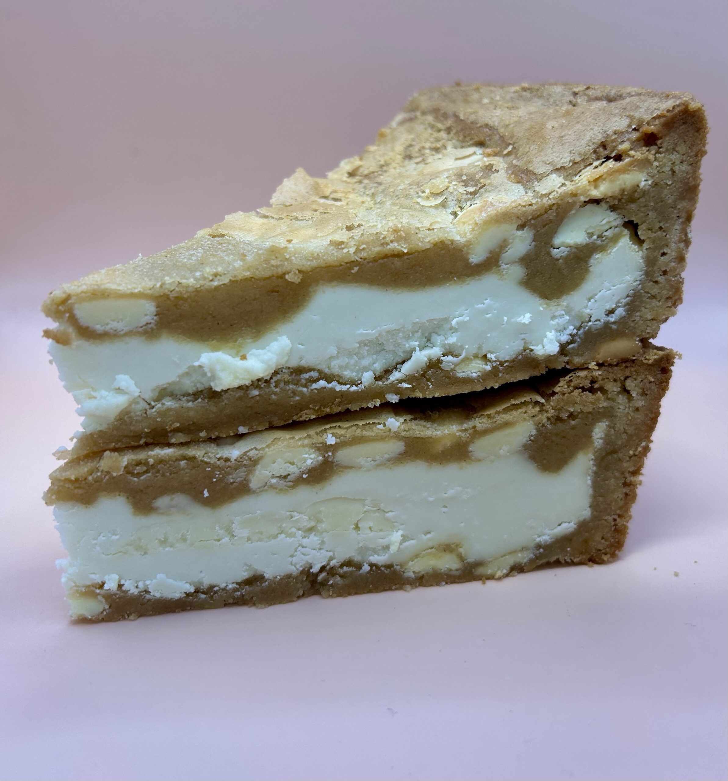 Milkybar cookie pie slice Cookie dough pie filled with white chocolate spread and Milkybar kid bars!
